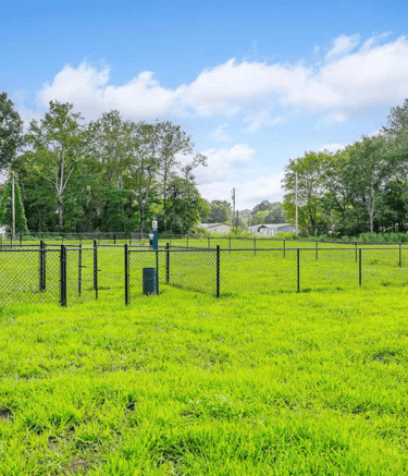 Pavilion, dog park, and gathering spaces for neighbors.